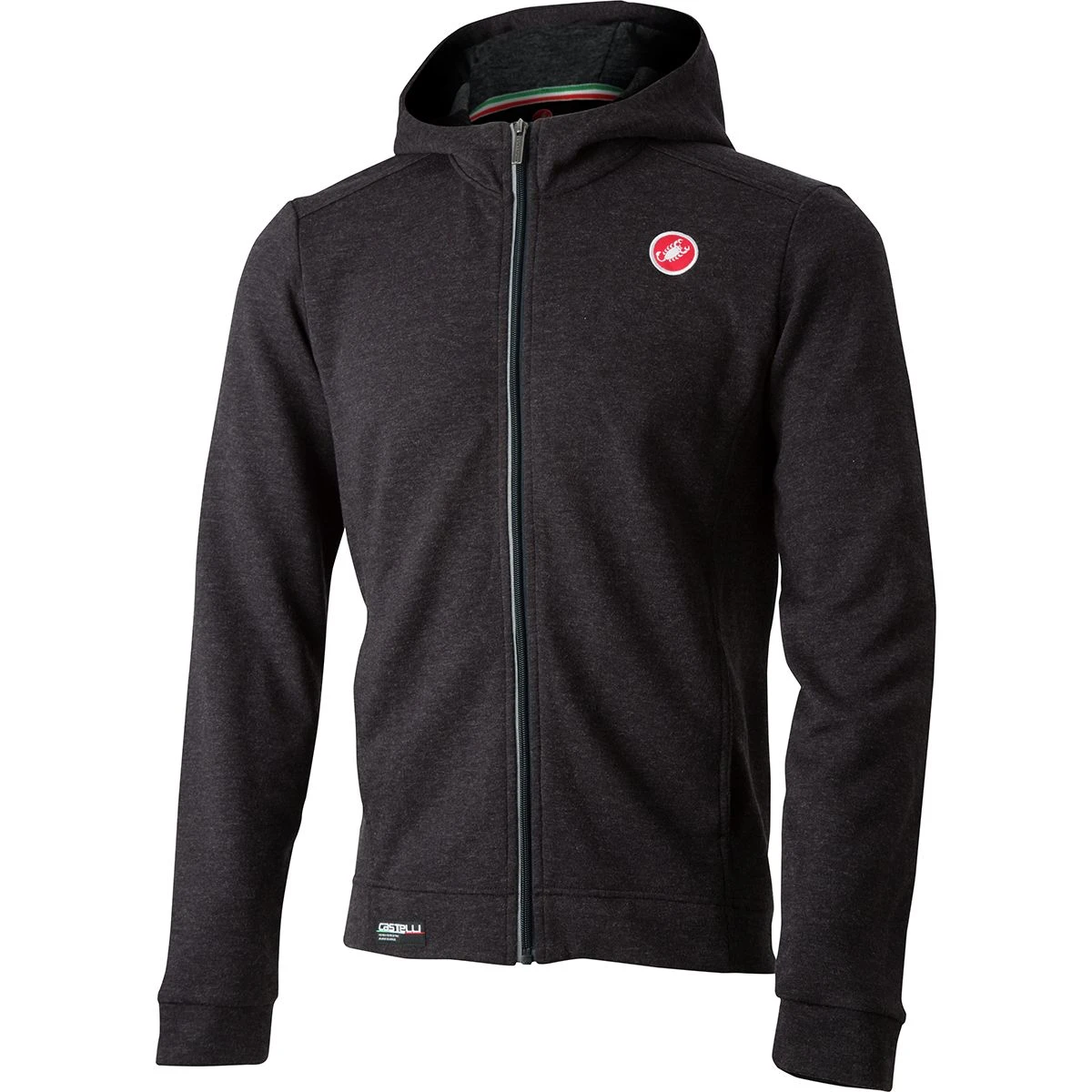 A handsome and cozy piece for some off the bike style, the Milano Full-Zip Fleece Jacket is a super cozy, polyester/wool-blended fleece hoodie with lined hood and pockets to keep you warm before or after a race or a night out on the town. Its iconic Castelli heritage branding with the famous scorpion and tri-color stripe on the inside pay an homage to cycling without screaming bike dork. The full-length zipper up front lets you open it up for more air flow if needed or to show off a flannel shirt underneath. As a nod towards the commuting cyclists, the sleeves and waist are cuffed to improve the fit and it has reflective elements to keep you a little more visible after the sun has set.